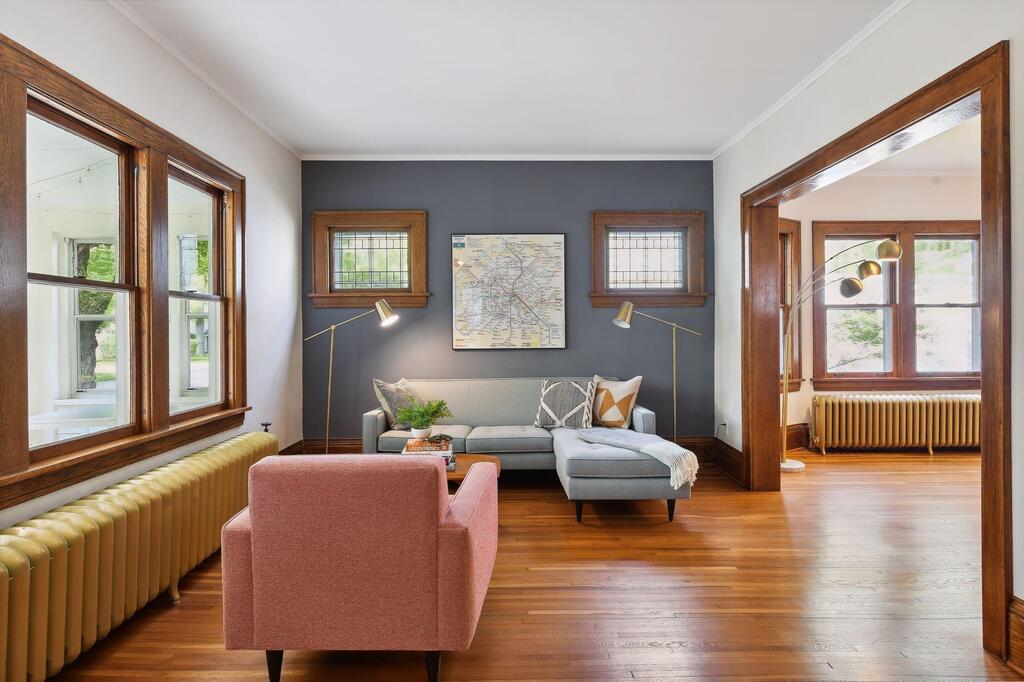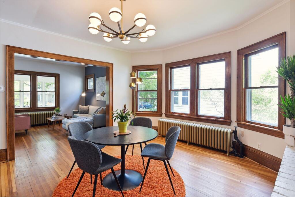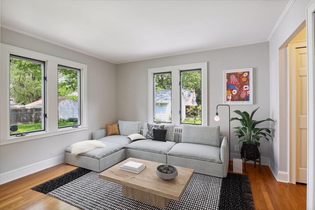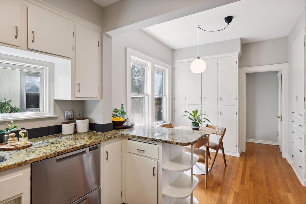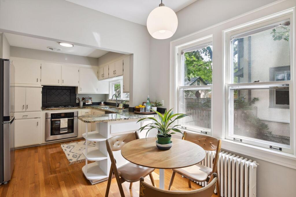 Home to be featured on an upcoming episode of HGTV's House Hunters! Welcome to this charming well-kept home in St Paul's Macalester-Groveland neighborhood. Walk in through the large 3-season porch with bright and sunny southern exposure. The entire home provides beautiful hardwood flooring, classic woodwork, built-in cabinetry. New gas burning fireplace brings a warm ambiance. The kitchen is stylish and inviting with granite countertops, stainless steel appliances, complete with cozy informal dining space with ample cabinetry. Main floor bedroom with ensuite bath is the perfect flex space-easily doubles as a family room or home office. The second story has three bedrooms and a beautifully updated full bath. In the peaceful and cultivated backyard you'll find a spacious patio that is perfect for entertaining. In the lower level you'll find a handy wine cellar, and so much potential for additional finished home space. Convenient location near restaurants, shopping, the Mississippi River.