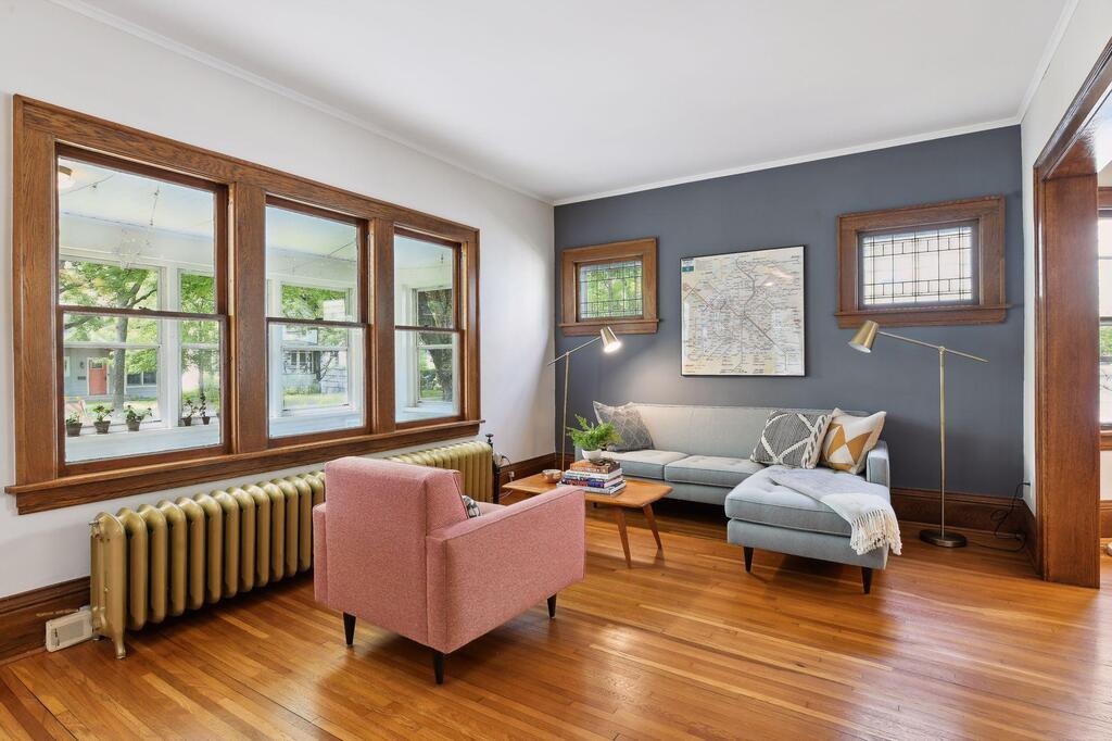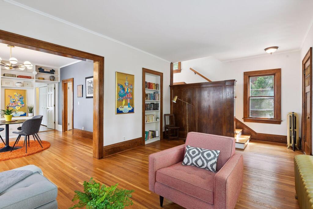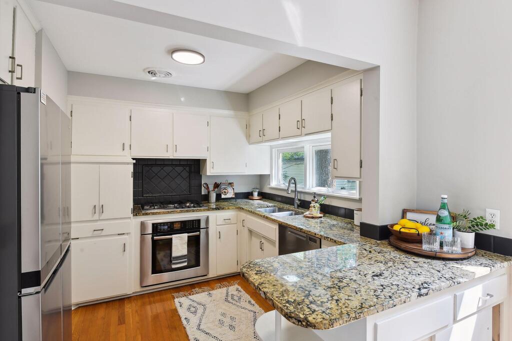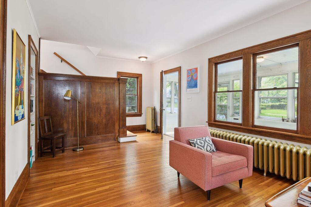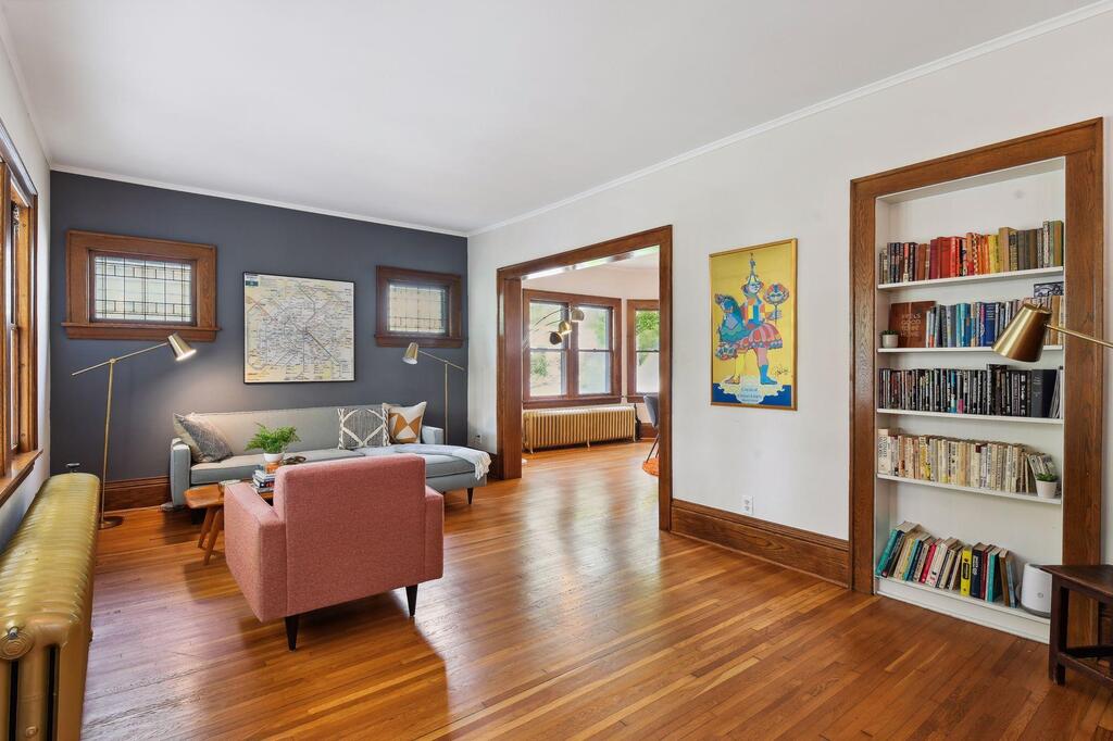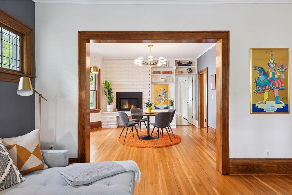 Home to be featured on an upcoming episode of HGTV's House Hunters! Welcome to this charming well-kept home in St Paul's Macalester-Groveland neighborhood. Walk in through the large 3-season porch with bright and sunny southern exposure. The entire home provides beautiful hardwood flooring, classic woodwork, built-in cabinetry. New gas burning fireplace brings a warm ambiance. The kitchen is stylish and inviting with granite countertops, stainless steel appliances, complete with cozy informal dining space with ample cabinetry. Main floor bedroom with ensuite bath is the perfect flex space-easily doubles as a family room or home office. The second story has three bedrooms and a beautifully updated full bath. In the peaceful and cultivated backyard you'll find a spacious patio that is perfect for entertaining. In the lower level you'll find a handy wine cellar, and so much potential for additional finished home space. Convenient location near restaurants, shopping, the Mississippi River.