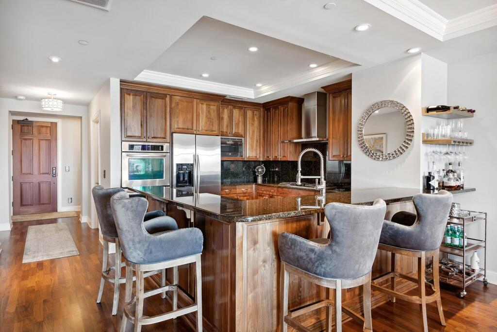 Luxury condo living at its finest! 5000 France is the perfect place to downsize or have a home away from home. Pristine upper level condo offers unobstructed city views from your private balcony, an open floor plan, gorgeous finishes like walnut floors, granite, stainless steel, and crown molding. Extras include a gas fireplace, walk-in pantry, guest powder room, heated double parking, and abundant storage. New paint, carpet, light fixtures, automated blinds, and beverage fridge. Well-appointed kitchen comes with double ovens, ample cabinetry and counters, and spacious bar seating. The primary bedroom suite has city views, generous space, bath with dual sinks and walk-in closet. The second bedroom suite offers a full bath, walk-in closet, and is ideal for overnight guests, cozy den, or home office. 5000 France is quiet and superbly built, and right in the heart of Edina. Steps to local eateries, fine boutiques, groceries, and the Edina Mann Theater. It's Home, Sweet Home!