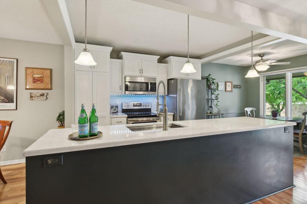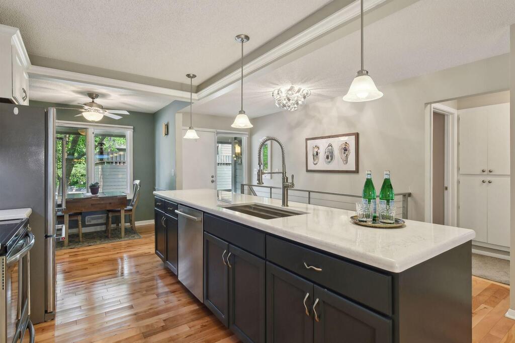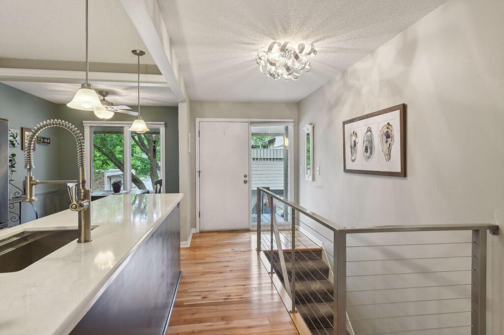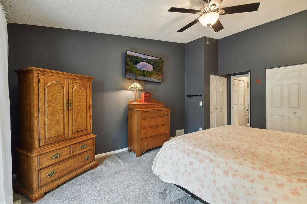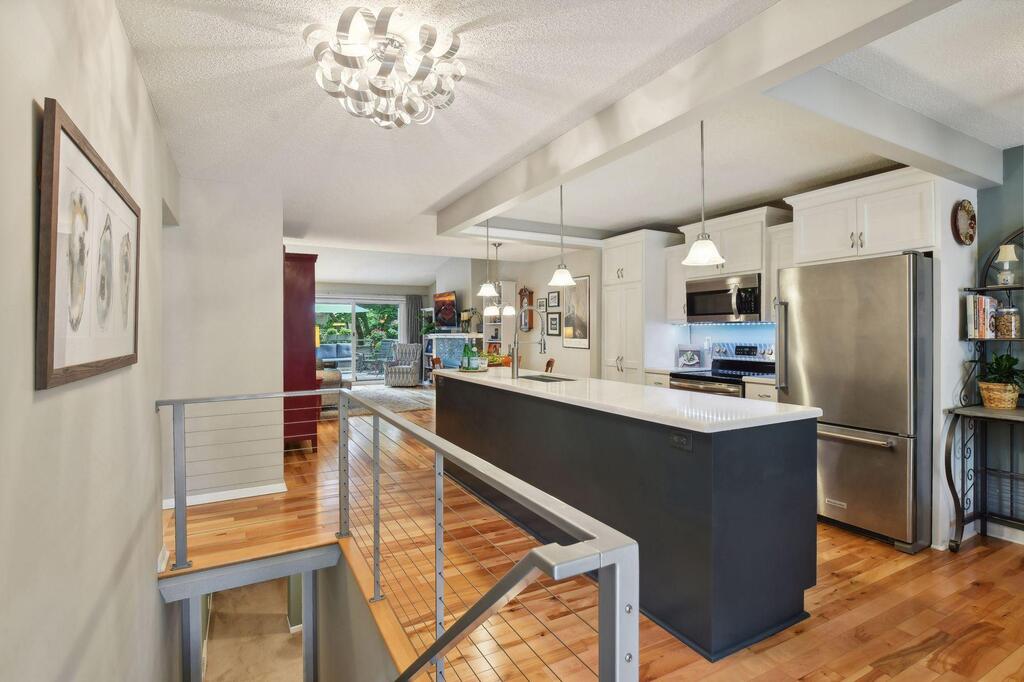 Gorgeous end unit townhome with beautiful yard/landscaping, situated nicely in sought after W. Bloomington location! Open/spacious main level with front-to-back sunlight / new T&G wood flooring & metal/wire railing! Modern kit with white cabinetry. 10ft center island, new quartz CT's, undermount sink, & SS appliances. Cozy informal dining plus larger dining area off kit. Vaulted LR boasts stone/gas FP & walks out to incredible, yard-like 25 x15 deck! This private oasis is like an addition to home & provides awesome outdoor space and includes natural gas grill! Huge vaulted owners BR with 2 closets walks out to outdoor living area. 2nd main level BR has office space built in to closet. Main level bath with new high-end vanity & CT. Loer level has good sized fam rm, 3rd BR/office, ¾ bath, finished 10 x 10 storage rm (could have many uses), laundry/craft rm & walks out to 2+ car gar! Other updates include 6 panel doors & lighting. Enjoy community center & in-ground pool area. Nice!