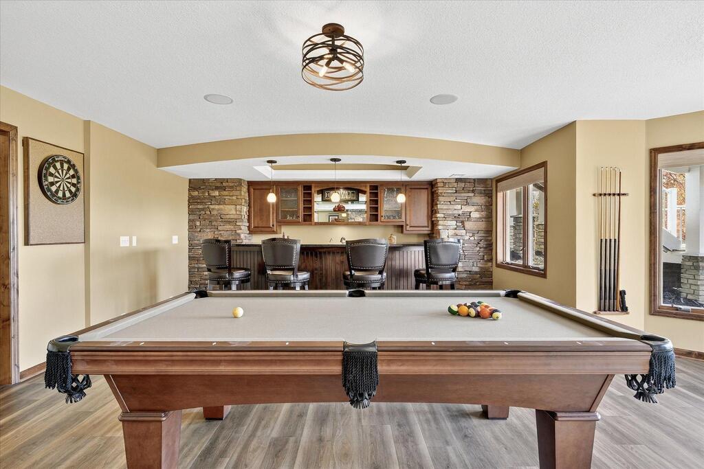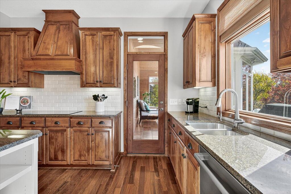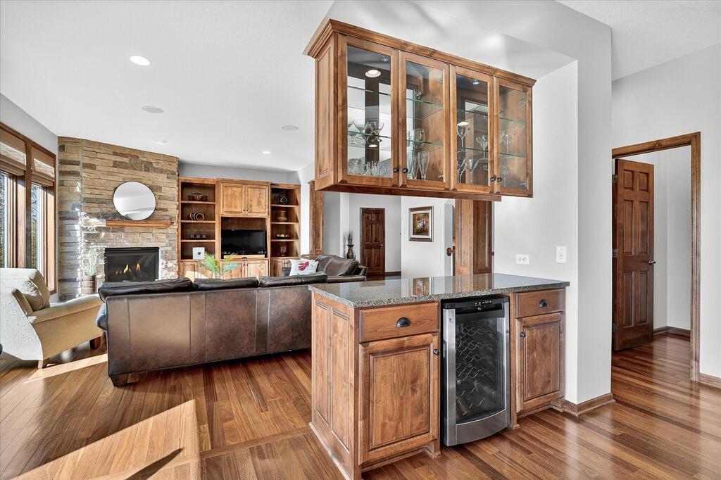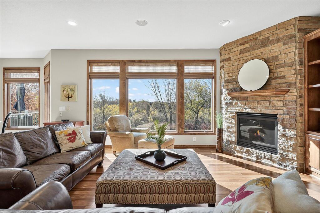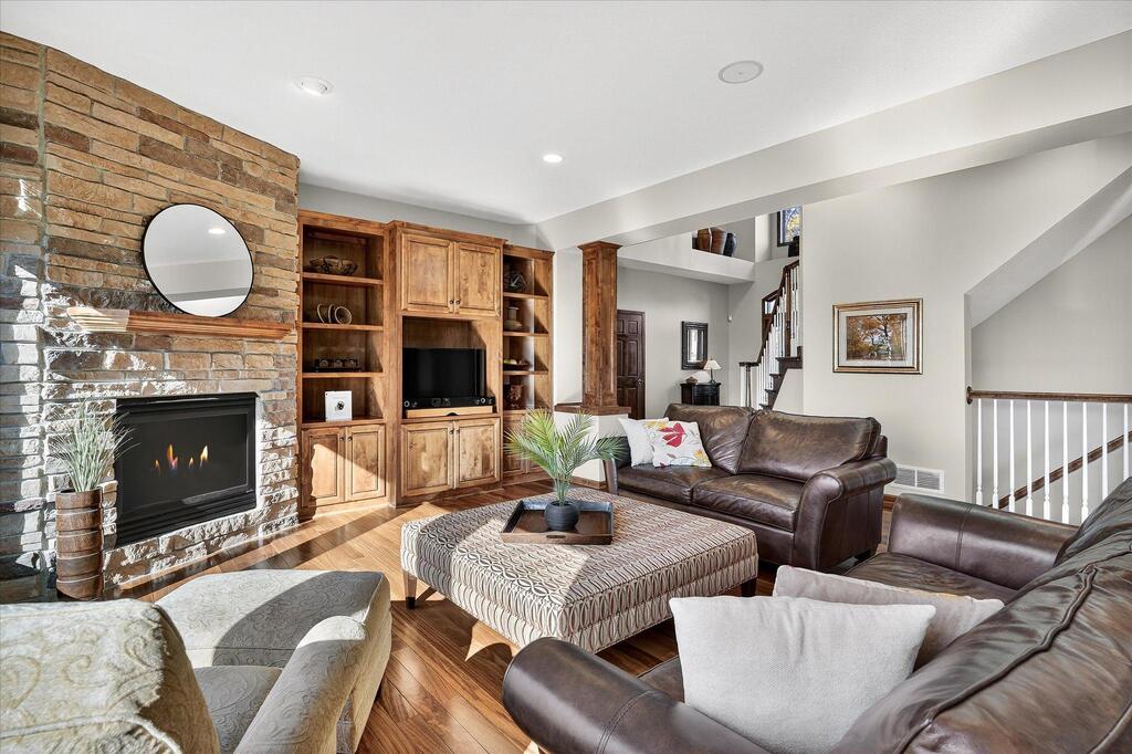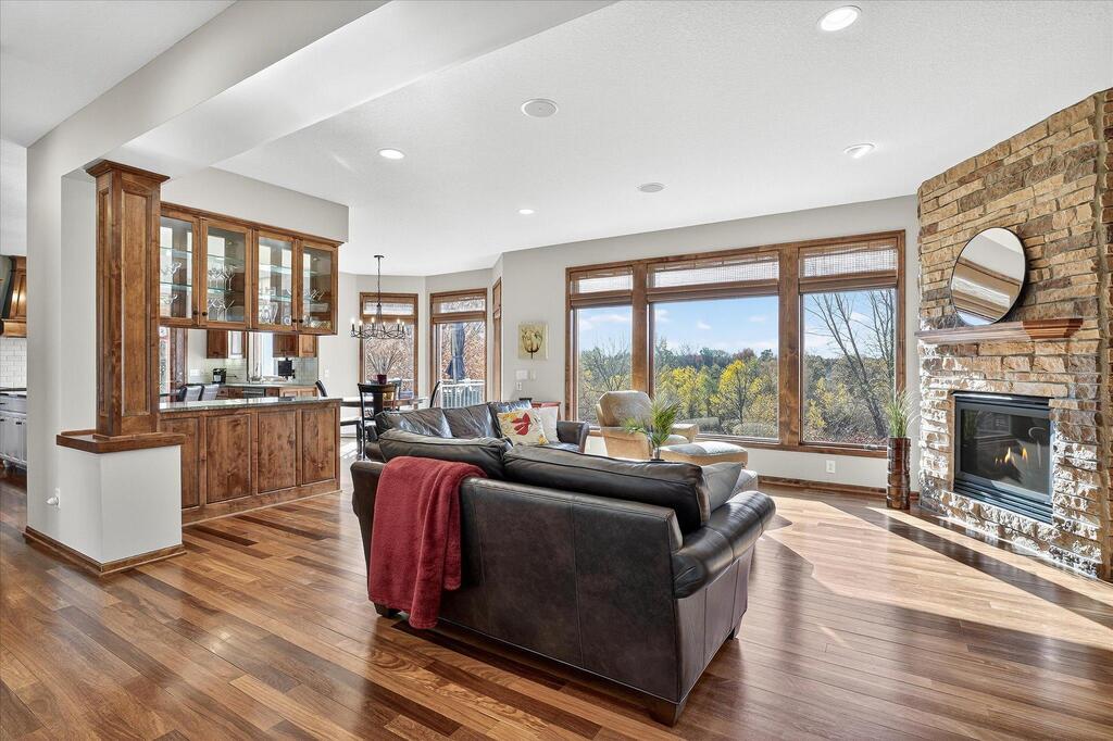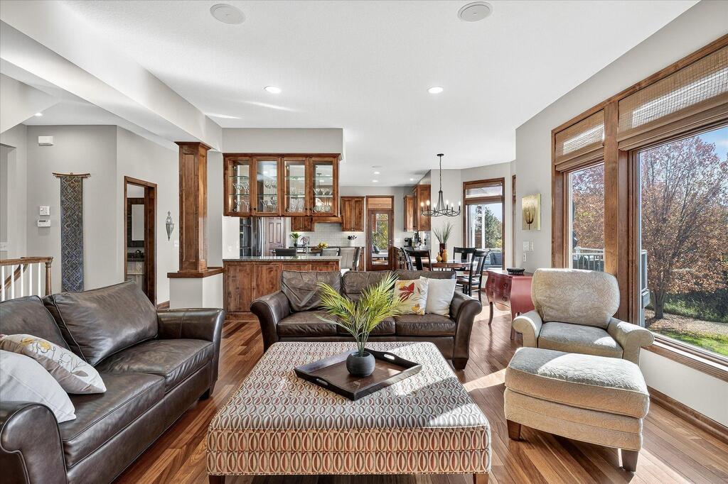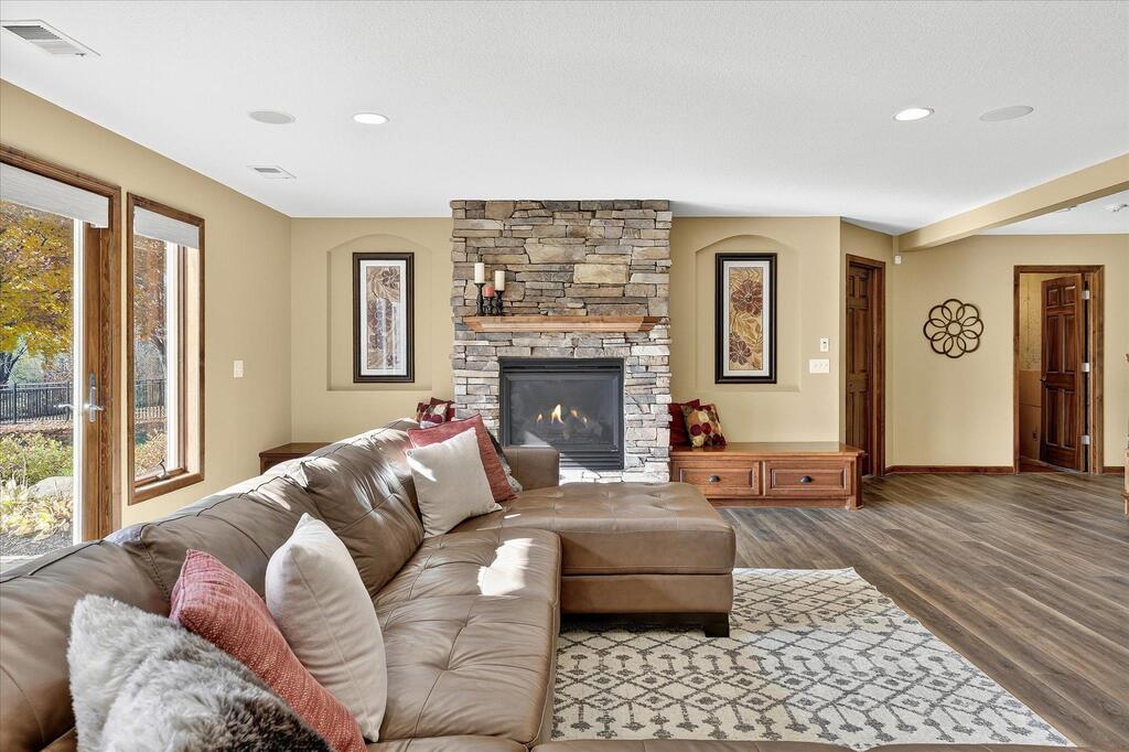 Luxury living in a premier location! Welcome to this stunning 2-story home, situated nicely on a private 1/2-acre lot in Wild Meadows, one of the most desirable neighborhoods in Medina! Just steps from prestigious Medina golf & country club, scenic parks, walking paths, & close to shopping. This conservation community has 345 acres filled with miles of private resident trails & protected wooded/natural areas. Step into the grand 2-story foyer which is open to upper level & enjoys front to back light. The main level fam room is flooded with natural light from expansive windows that frame serene views of a private, wooded lot & tranquil pond & features a striking stone fireplace with a rich wood mantel flanked by built-in shelving. Elegant wood pillars add warmth & architectural charm. Brazilian cherry wood floors flow throughout the main level, leading to the gourmet kitchen, boasting clear alder cabinetry, granite countertops, a beveled subway tile backsplash, & a walk-in pantry. You will appreciate the double wall ovens with convection heating, induction cooktop, & a generous island with seating for four, complemented by an informal dining area. A thoughtfully designed peninsula with added storage & counterspace has a built-in wine fridge & creates a stylish transition between the kit & fam room, enhancing both function & flow. When guests arrive, the spacious formal dining room is perfect for entertaining. French doors off the foyer lead to main level office with an added nook for a desk/work area. Elevated windows provide both extra light & privacy. Enjoy the changing seasons in the 3-season porch featuring in-floor heat & full-view windows overlooking the backyard & woods. Step out onto the maint-free deck for outdoor relaxation. The main level also includes a laundry room with sink/storage/workspace, a mudroom with locker-style storage/large closet, & a convenient half bath. Ascend the open staircase to the upper level, which offers 4 BR's. French doors lead to spacious owner's suite featuring a luxurious bath with wraparound double sinks, white tile finishes, a soaking tub, a glass-enclosed shower, a private water closet, & a custom-organized walk-in closet. 2 additional BR's share a full Jack & Jill bath with double sinks, while the 4th BR serves as a 2nd suite with its own 3/4 bath, walk-in closet, & elevated windows. The walk-out lower level is designed for fun & relaxation. A generously sized fam room with a stone fireplace & built-in benches flows into a custom wet bar area with rich wood cabinetry, granite counters, stone accents, & full appliances. The billiards area sits between the bar & fam room. Step outside to the paver patio & enjoy the park-like yard. 5th BR, 3/4 bath & tons of storage complete the basement. Built-in speakers in many rooms. Oversized 3 car gar with added 25 x 12 heated/insulated workshop (listed as outbuilding). New roof. See supplement for additional updates. This home offers the perfect blend of luxury, comfort, & location. Don’t miss your opportunity to own a truly exceptional property in Wayzata School Dist.