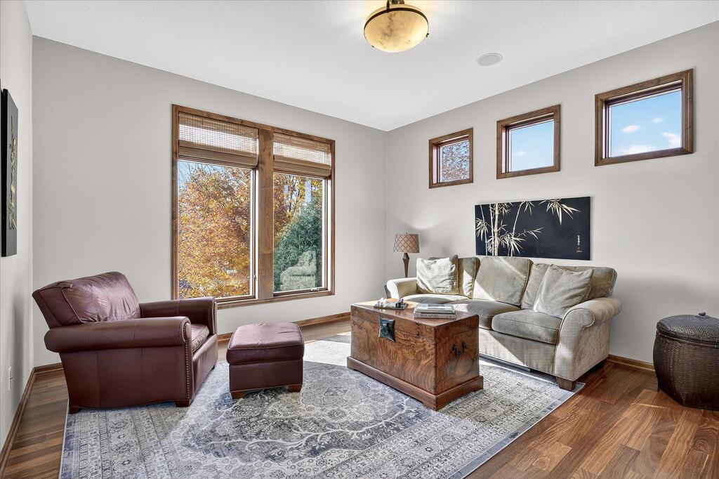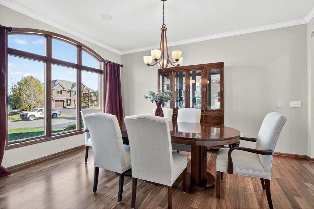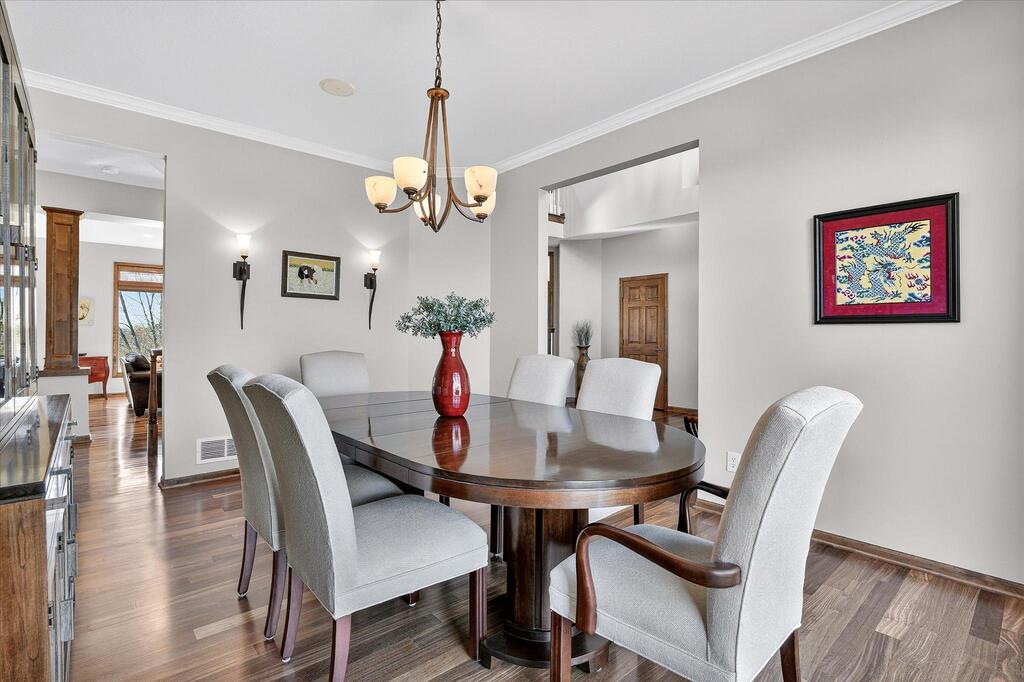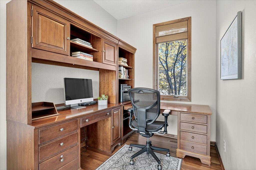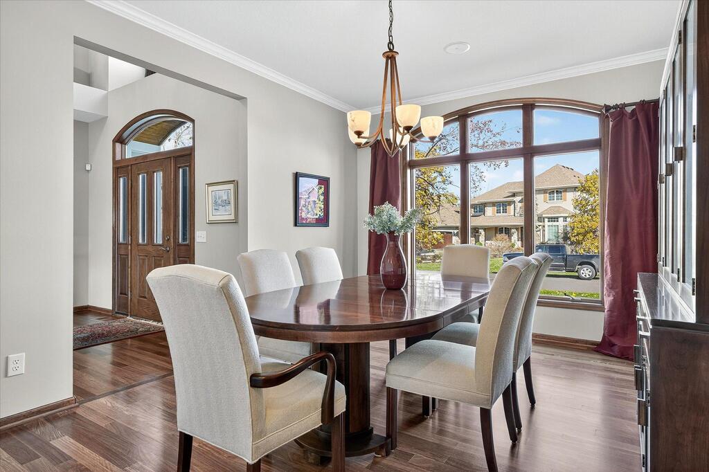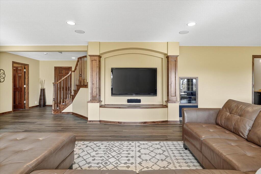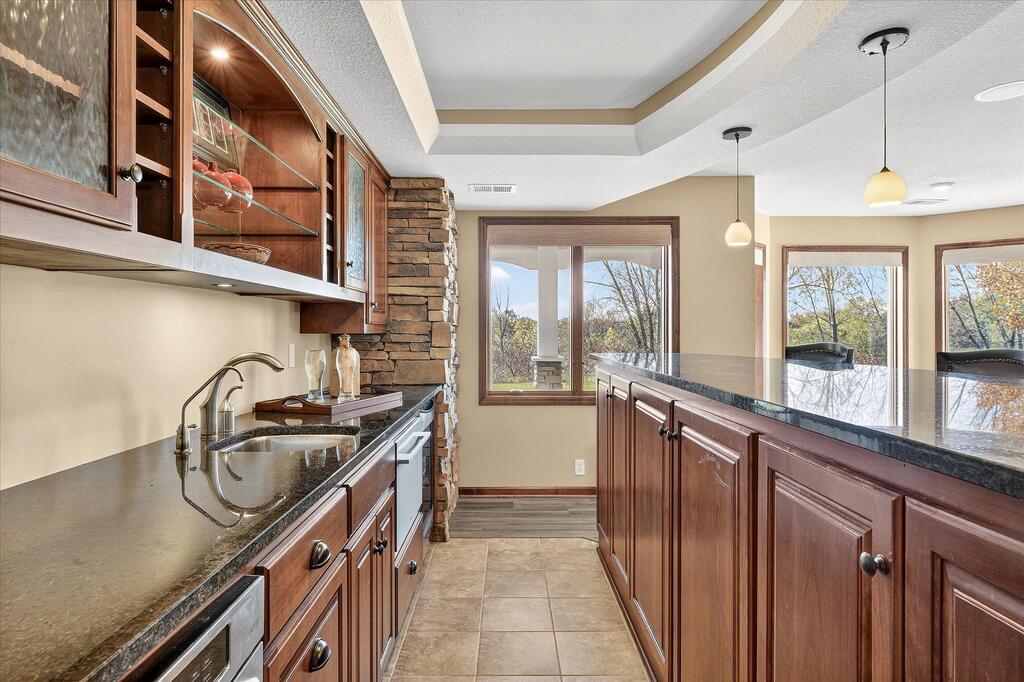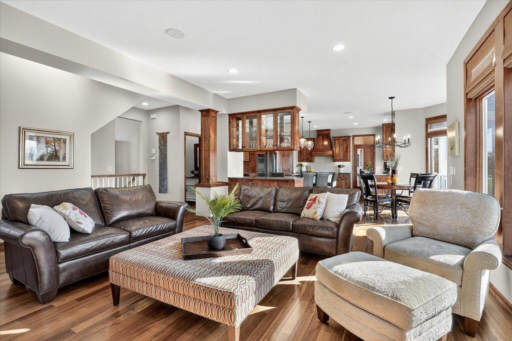 Luxury living in a premier location! Welcome to this stunning 2-story home, situated nicely on a private 1/2-acre lot in Wild Meadows, one of the most desirable neighborhoods in Medina! Just steps from prestigious Medina golf & country club, scenic parks, walking paths, & close to shopping. This conservation community has 345 acres filled with miles of private resident trails & protected wooded/natural areas. Step into the grand 2-story foyer which is open to upper level & enjoys front to back light. The main level fam room is flooded with natural light from expansive windows that frame serene views of a private, wooded lot & tranquil pond & features a striking stone fireplace with a rich wood mantel flanked by built-in shelving. Elegant wood pillars add warmth & architectural charm. Brazilian cherry wood floors flow throughout the main level, leading to the gourmet kitchen, boasting clear alder cabinetry, granite countertops, a beveled subway tile backsplash, & a walk-in pantry. You will appreciate the double wall ovens with convection heating, induction cooktop, & a generous island with seating for four, complemented by an informal dining area. A thoughtfully designed peninsula with added storage & counterspace has a built-in wine fridge & creates a stylish transition between the kit & fam room, enhancing both function & flow. When guests arrive, the spacious formal dining room is perfect for entertaining. French doors off the foyer lead to main level office with an added nook for a desk/work area. Elevated windows provide both extra light & privacy. Enjoy the changing seasons in the 3-season porch featuring in-floor heat & full-view windows overlooking the backyard & woods. Step out onto the maint-free deck for outdoor relaxation. The main level also includes a laundry room with sink/storage/workspace, a mudroom with locker-style storage/large closet, & a convenient half bath. Ascend the open staircase to the upper level, which offers 4 BR's. French doors lead to spacious owner's suite featuring a luxurious bath with wraparound double sinks, white tile finishes, a soaking tub, a glass-enclosed shower, a private water closet, & a custom-organized walk-in closet. 2 additional BR's share a full Jack & Jill bath with double sinks, while the 4th BR serves as a 2nd suite with its own 3/4 bath, walk-in closet, & elevated windows. The walk-out lower level is designed for fun & relaxation. A generously sized fam room with a stone fireplace & built-in benches flows into a custom wet bar area with rich wood cabinetry, granite counters, stone accents, & full appliances. The billiards area sits between the bar & fam room. Step outside to the paver patio & enjoy the park-like yard. 5th BR, 3/4 bath & tons of storage complete the basement. Built-in speakers in many rooms. Oversized 3 car gar with added 25 x 12 heated/insulated workshop (listed as outbuilding). New roof. See supplement for additional updates. This home offers the perfect blend of luxury, comfort, & location. Don’t miss your opportunity to own a truly exceptional property in Wayzata School Dist.