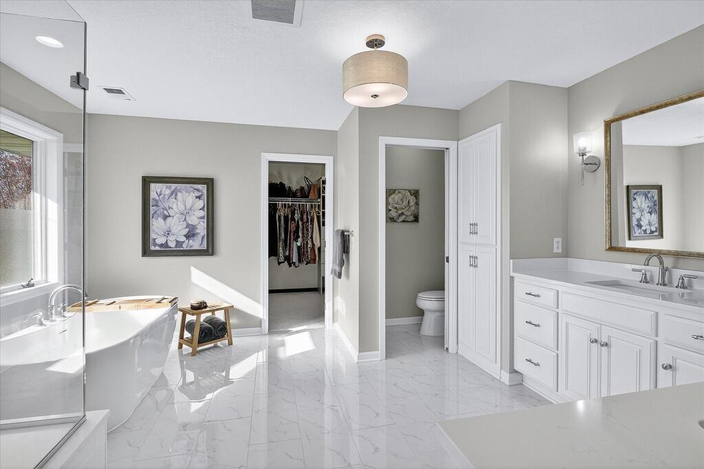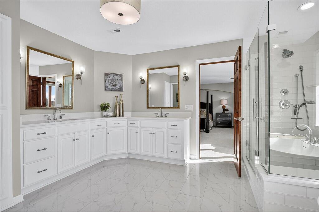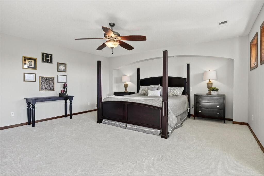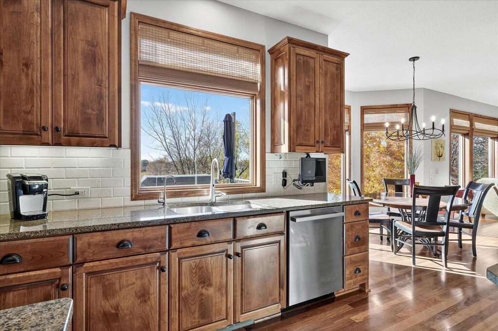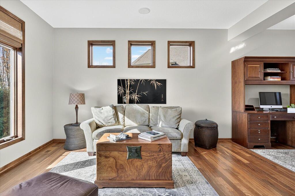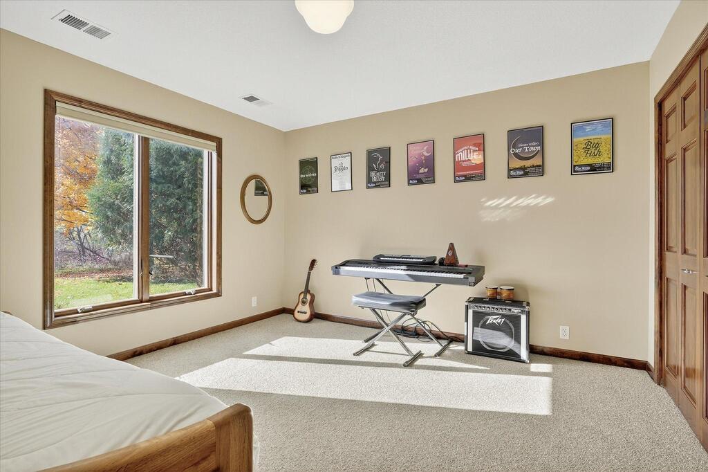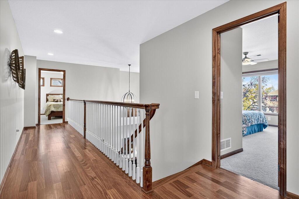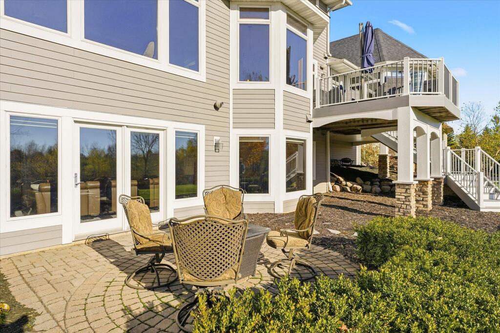 Luxury living in a premier location! Welcome to this stunning 2-story home, situated nicely on a private 1/2-acre lot in Wild Meadows, one of the most desirable neighborhoods in Medina! Just steps from prestigious Medina golf & country club, scenic parks, walking paths, & close to shopping. This conservation community has 345 acres filled with miles of private resident trails & protected wooded/natural areas. Step into the grand 2-story foyer which is open to upper level & enjoys front to back light. The main level fam room is flooded with natural light from expansive windows that frame serene views of a private, wooded lot & tranquil pond & features a striking stone fireplace with a rich wood mantel flanked by built-in shelving. Elegant wood pillars add warmth & architectural charm. Brazilian cherry wood floors flow throughout the main level, leading to the gourmet kitchen, boasting clear alder cabinetry, granite countertops, a beveled subway tile backsplash, & a walk-in pantry. You will appreciate the double wall ovens with convection heating, induction cooktop, & a generous island with seating for four, complemented by an informal dining area. A thoughtfully designed peninsula with added storage & counterspace has a built-in wine fridge & creates a stylish transition between the kit & fam room, enhancing both function & flow. When guests arrive, the spacious formal dining room is perfect for entertaining. French doors off the foyer lead to main level office with an added nook for a desk/work area. Elevated windows provide both extra light & privacy. Enjoy the changing seasons in the 3-season porch featuring in-floor heat & full-view windows overlooking the backyard & woods. Step out onto the maint-free deck for outdoor relaxation. The main level also includes a laundry room with sink/storage/workspace, a mudroom with locker-style storage/large closet, & a convenient half bath. Ascend the open staircase to the upper level, which offers 4 BR's. French doors lead to spacious owner's suite featuring a luxurious bath with wraparound double sinks, white tile finishes, a soaking tub, a glass-enclosed shower, a private water closet, & a custom-organized walk-in closet. 2 additional BR's share a full Jack & Jill bath with double sinks, while the 4th BR serves as a 2nd suite with its own 3/4 bath, walk-in closet, & elevated windows. The walk-out lower level is designed for fun & relaxation. A generously sized fam room with a stone fireplace & built-in benches flows into a custom wet bar area with rich wood cabinetry, granite counters, stone accents, & full appliances. The billiards area sits between the bar & fam room. Step outside to the paver patio & enjoy the park-like yard. 5th BR, 3/4 bath & tons of storage complete the basement. Built-in speakers in many rooms. Oversized 3 car gar with added 25 x 12 heated/insulated workshop (listed as outbuilding). New roof. See supplement for additional updates. This home offers the perfect blend of luxury, comfort, & location. Don’t miss your opportunity to own a truly exceptional property in Wayzata School Dist.