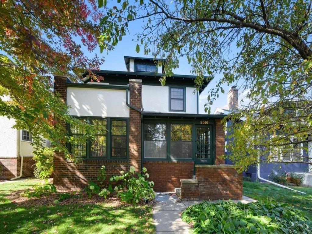 Beautiful and stately curb appeal invites you inside this urban and updated two story home. A cozy three season porch calls for the first sips of your morning coffee. Gorgeous windows impress along with the serene and light filled living areas. You'll love the peaceful sun room with inlaid floors and spacious living room with wood burning fireplace. Fresh, updated kitchen offers custom cabinetry, new granite counters, tile backsplash, SS appliances. Generous formal dining space is complete with built-in buffet and full wall of custom cabinetry and bookshelves. Convenient main floor powder room! Upstairs you'll find three bedrooms, small walk-up attic, and a luxury sized bathroom. Enjoy the backyard oasis with professional landscaping, attractive patio, and deck. Walk to Bde Maka Ska, shops, and eateries. It's home, sweet home!