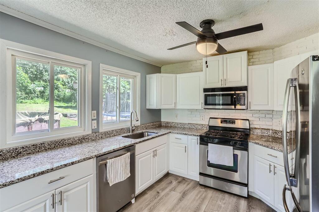 Your buyers will want to call this completely updated rambler home the minute they pull up. 3 bedrooms and an updated walk through bath on the main level, Gorgeous kitchen with white cabinetry, granite counter tops, white subway backsplash and newer stainless steel appliances and vaulted ceiling. Large informal dining room with patio doors leading you to your private 10x20 patio. Generous sized living room with gas burning fireplace for those cold Minnesota days and nights. Lower level offers an entertaining size family room, a forth bedroom, second full bathroom and tons of storage. Fresh paint colors, white trim and doors, plush carpeting and beautiful Vinyl plank flooring, updated light fixtures and ceiling fans throughout. Gutters and downspouts. Newer Dakin furnace and air conditioning 11/2023. New water softener 2022. Enjoy entertaining and family BBQ's on your patio and watch the kids play games in your private backyard surrounded by a 6' privacy fence.
