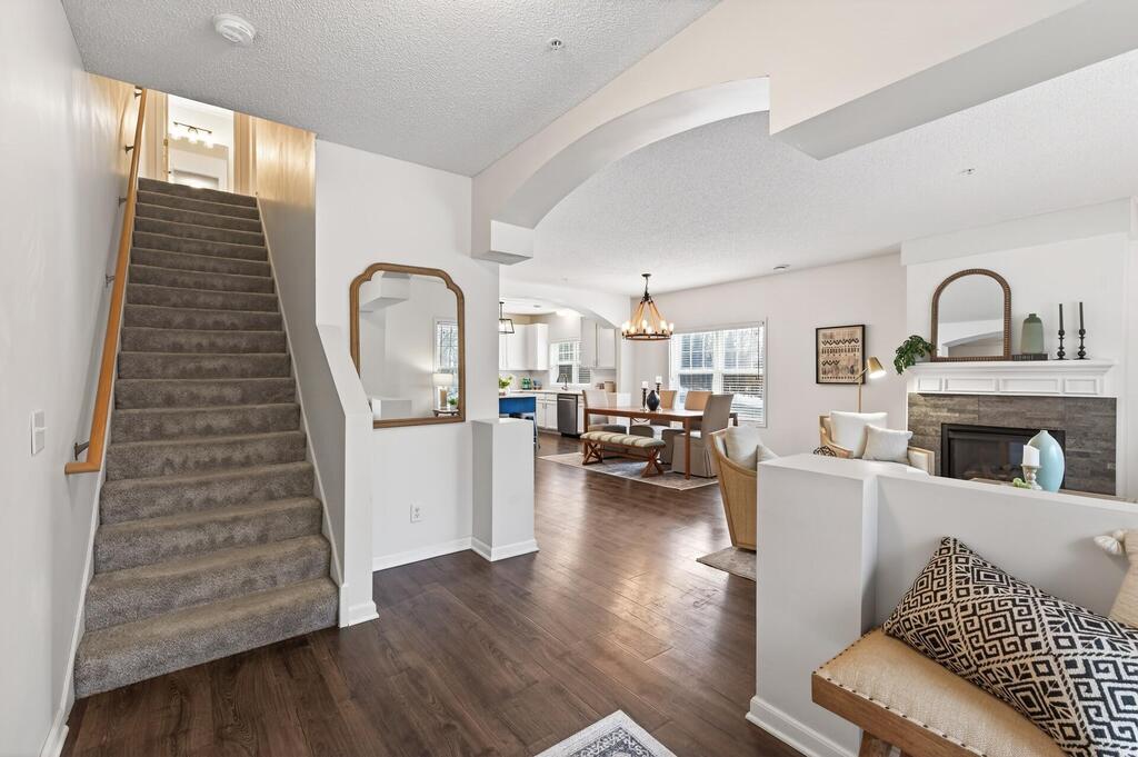 The main level is open, bright, and easy to live in. The layout flows naturally from room to room, making it just as comfortable for a quiet night in as it is for hosting friends. The updated kitchen includes an ample walk-in pantry with ceiling height shelving to maximize storage. The gas fireplace adds warmth and character to the living space, and a main level powder room is tucked away, perfect for guests. Upstairs, the primary bedroom stands out with its size and sense of separation. The ensuite bathroom and shower make the space a private retreat for decompressing at the end of the day. Two additional light-filled bedrooms work well for guests, work from home space, or whatever life needs next. All three bedrooms feature new carpet and generous space. The washer and dryer are situated on the second floor, so need to carry laundry up and down stairs. A private, heated underground two car garage takes the stress out of Minnesota winters, and easy access to Highways 41, 5, and 212 keeps commuting simple. Located in the Carver County School District, this home offers a rare combination of privacy, functionality, and location that feels easy to settle into and hard to leave.